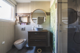 La salle de bain est équipée d'une douche moderne et d'un WC.