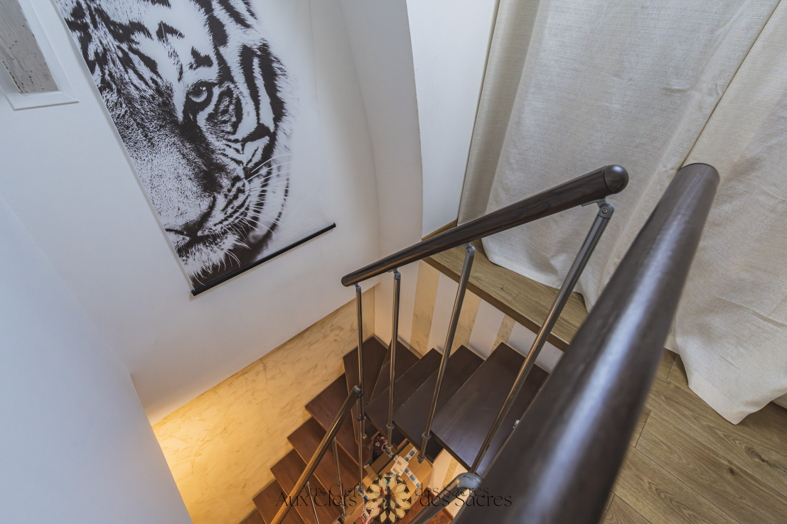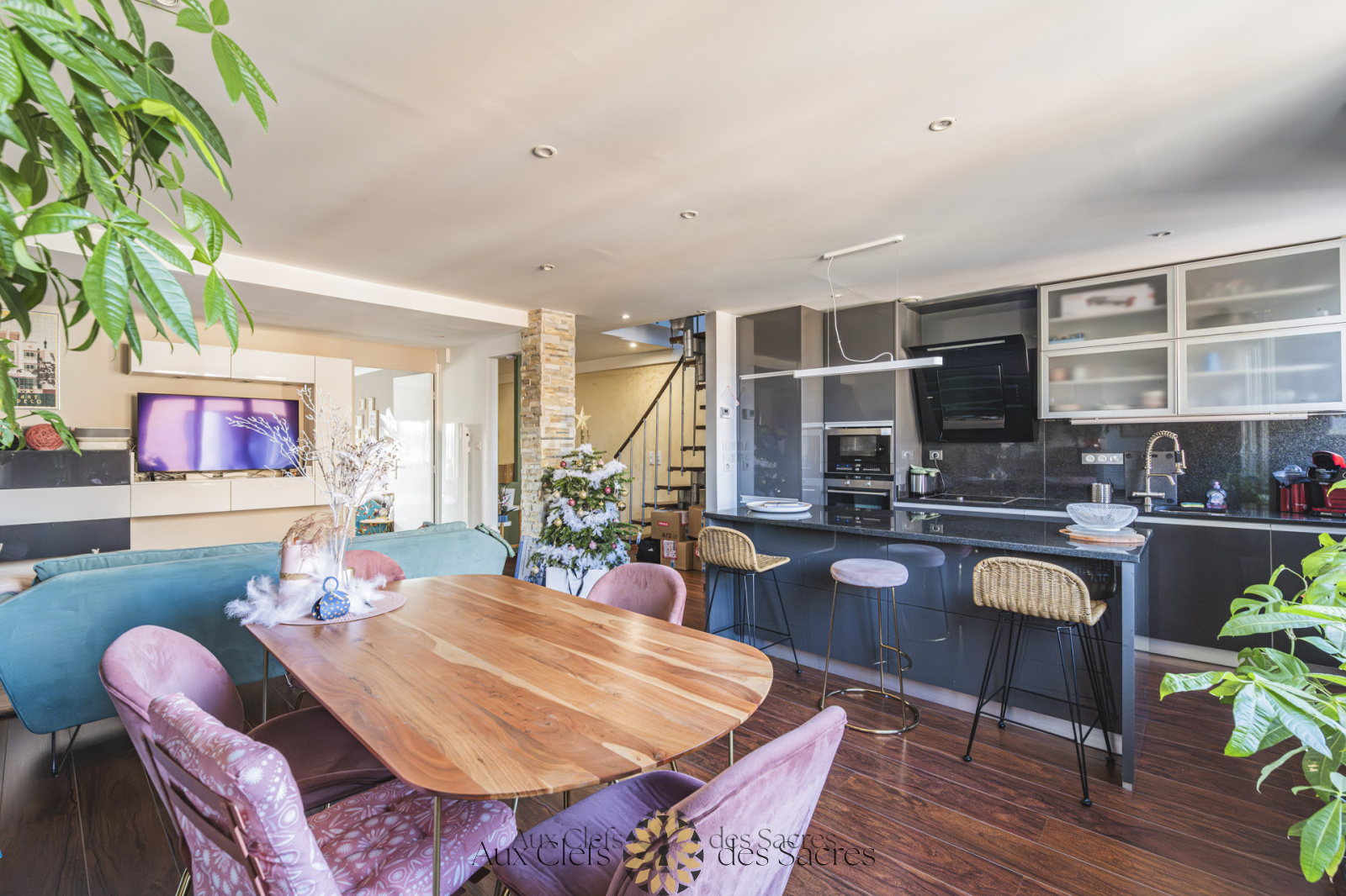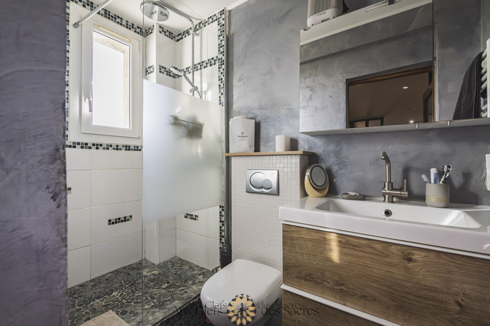 Le logement se compose d'une entrée, d'une grande pièce de vie avec séjour, salle à manger et cuisine ouverte, d'une terrasse, d'une salle de douches, d'une salle de bains, de deux WC et d'une 'un bureau.