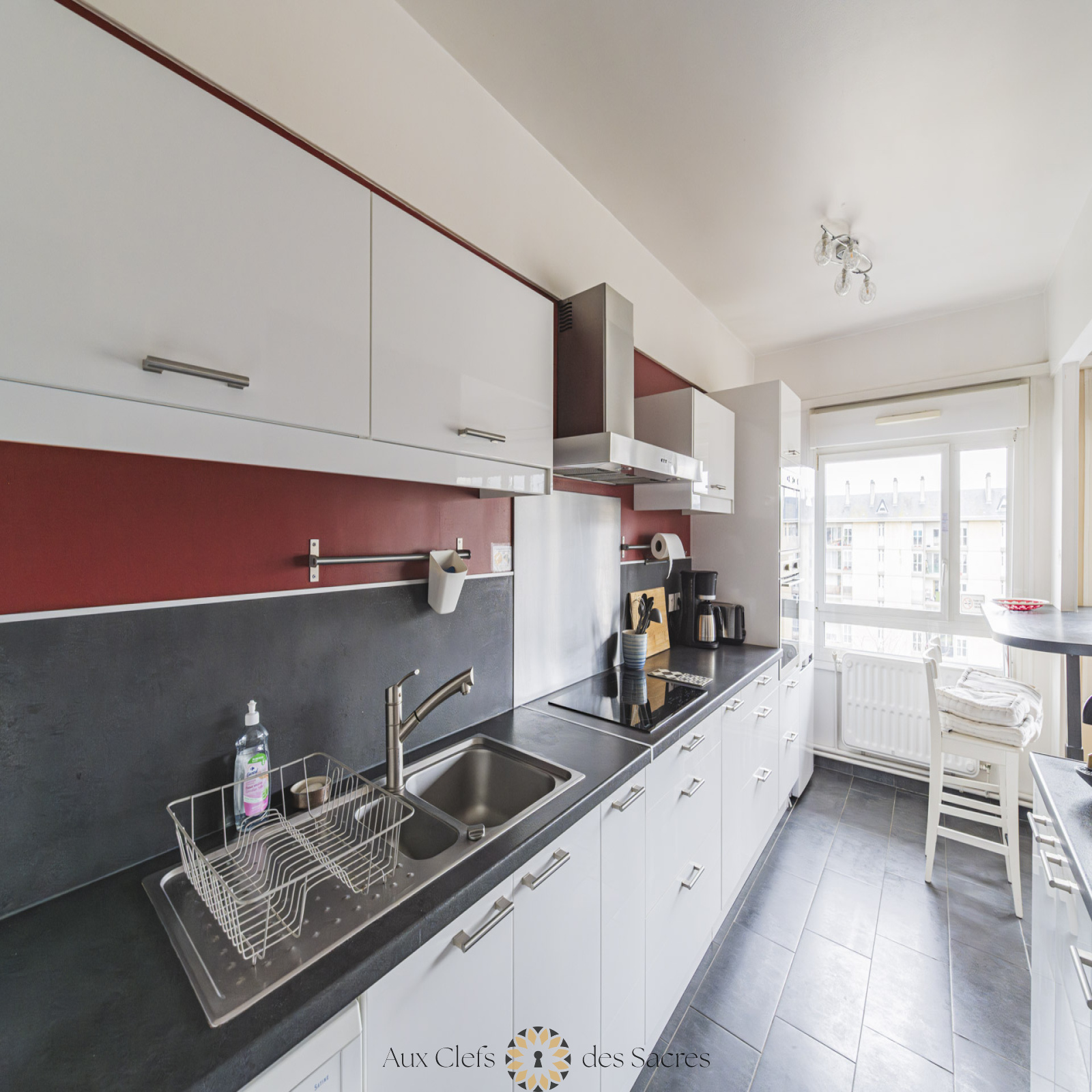 REIMS - ST-REMI, proche de l'ensemble des commodités et des transports, nous vous proposons en location, un appartement meublé type 5 d'une superficie de 103.57m² se composant, d'une entrée, dégagement, une pièce de vie, une cuisine séparée, 4 chambres, 2 salle de douches/WC, placards.