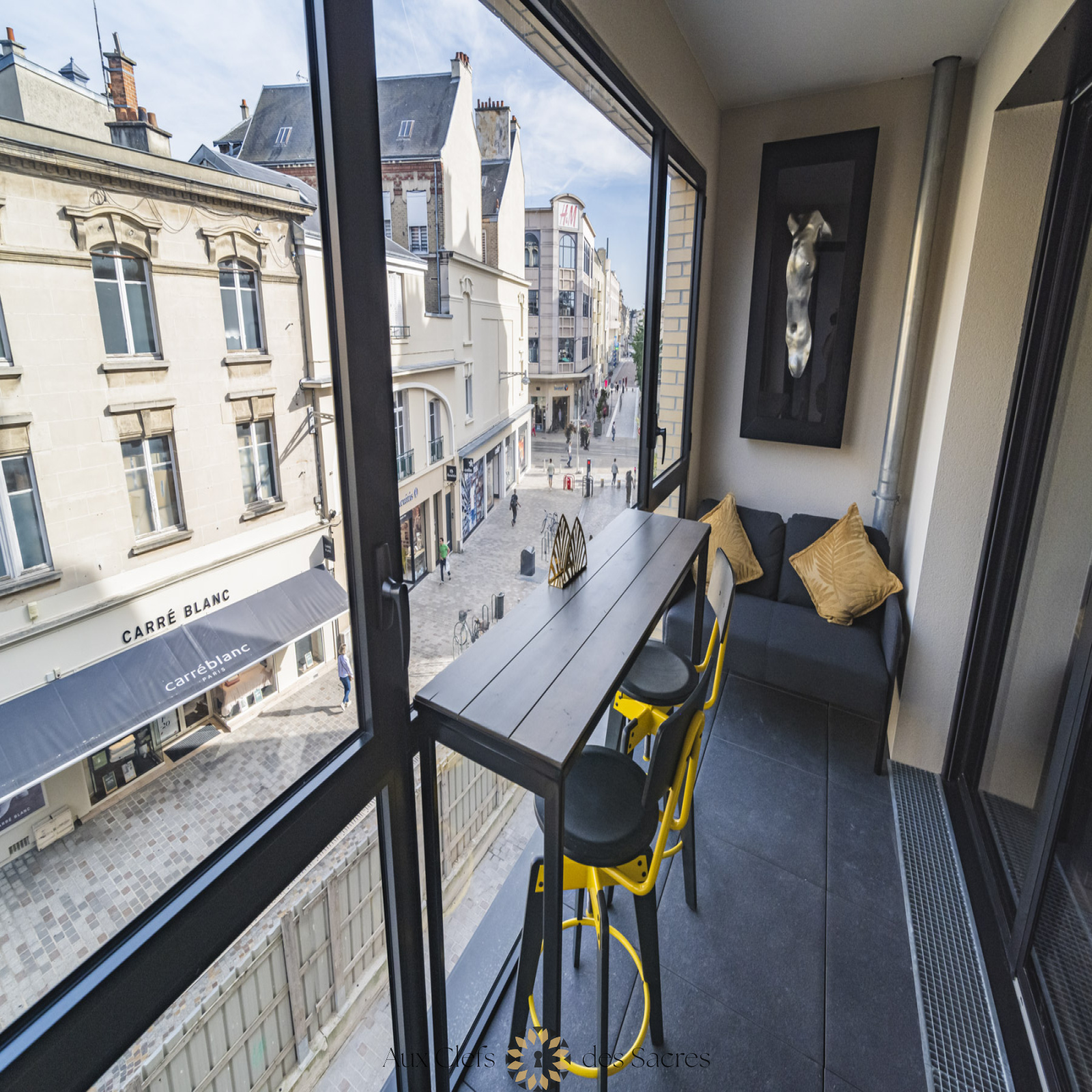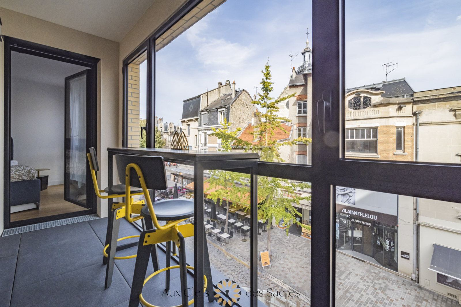 -Et cerise sur le gâteau : une loggia offrant une vue imprenable sur les rues animées de l'hypercentre de Reims.