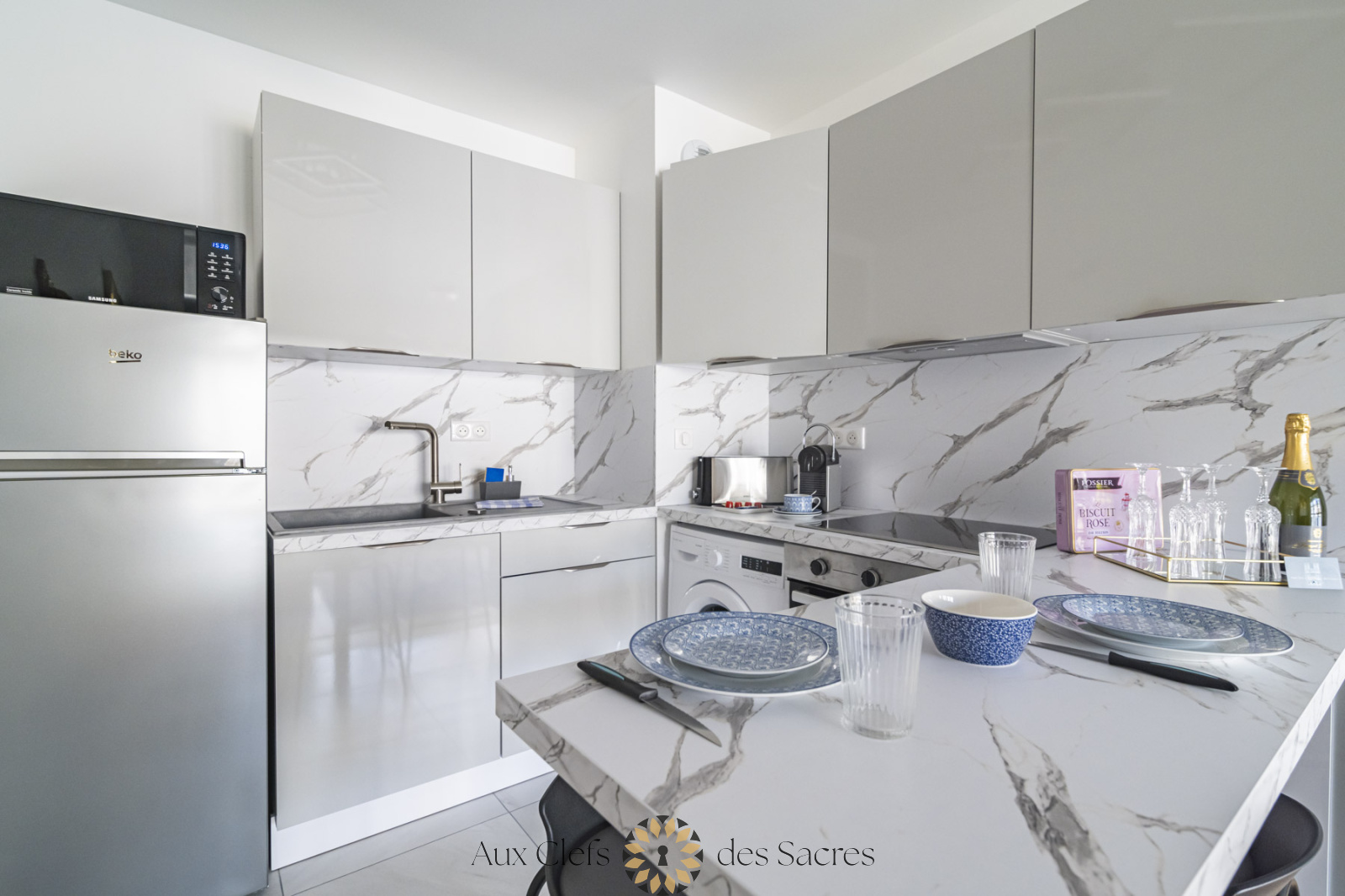 Niché au cœur de l'hypercentre de Reims, dans un immeuble ancien magistralement réhabilité en 2023, cet appartement type 2 est un véritable trésor. À peine franchi le seuil de cette somptueuse façade, vous serez séduit par son agencement moderne et sa décoration soignée.