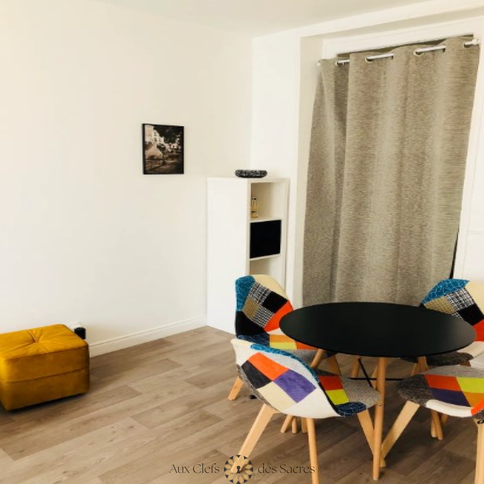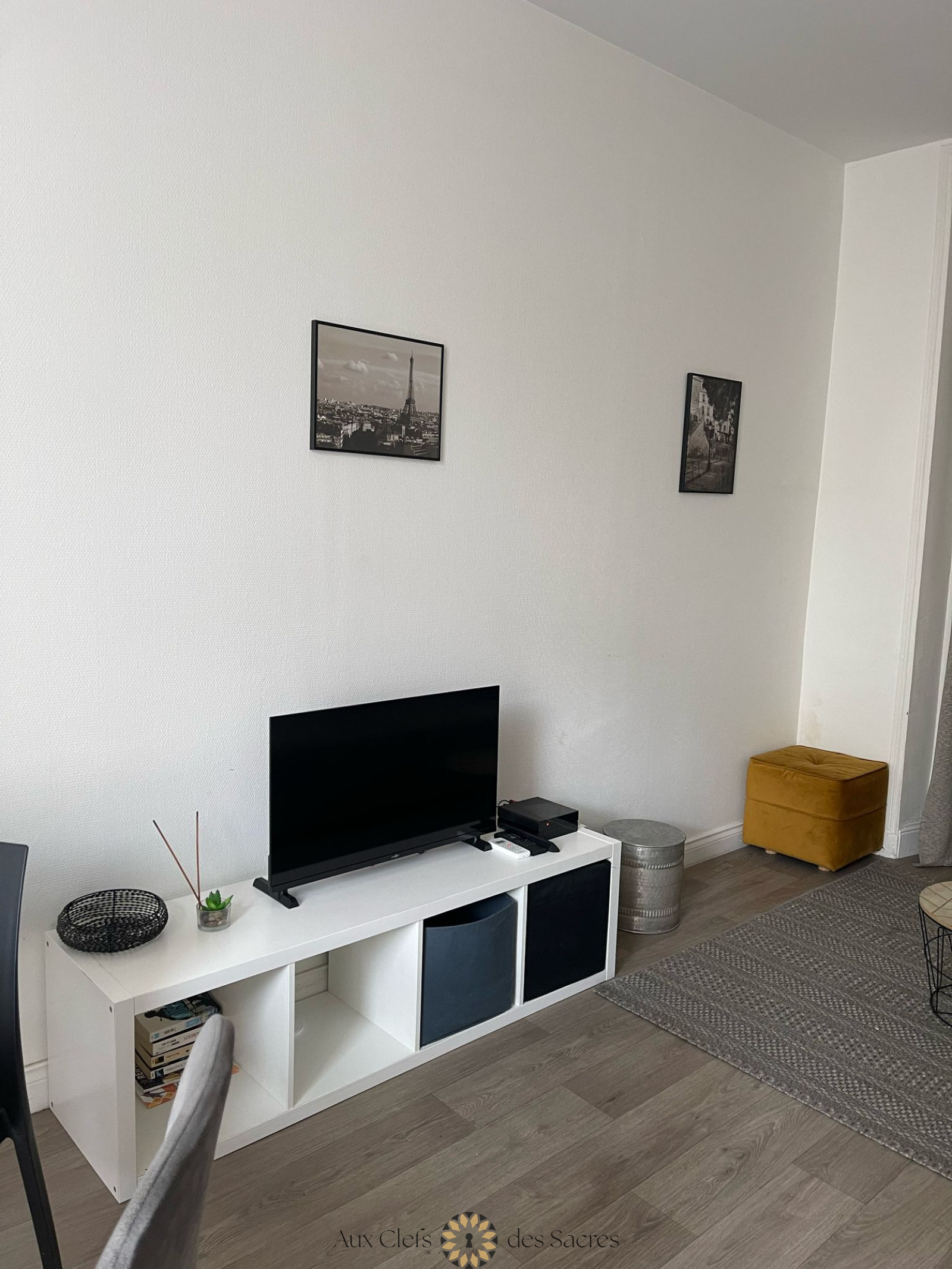 Dès l’entrée, vous découvrirez un espace de vie chaleureux et lumineux, composé d’un salon et d’une salle à manger. Une table ronde pour quatre personnes invite à partager des repas conviviaux, tandis qu’un canapé douillet et une télévision vous attendent pour des moments de détente.