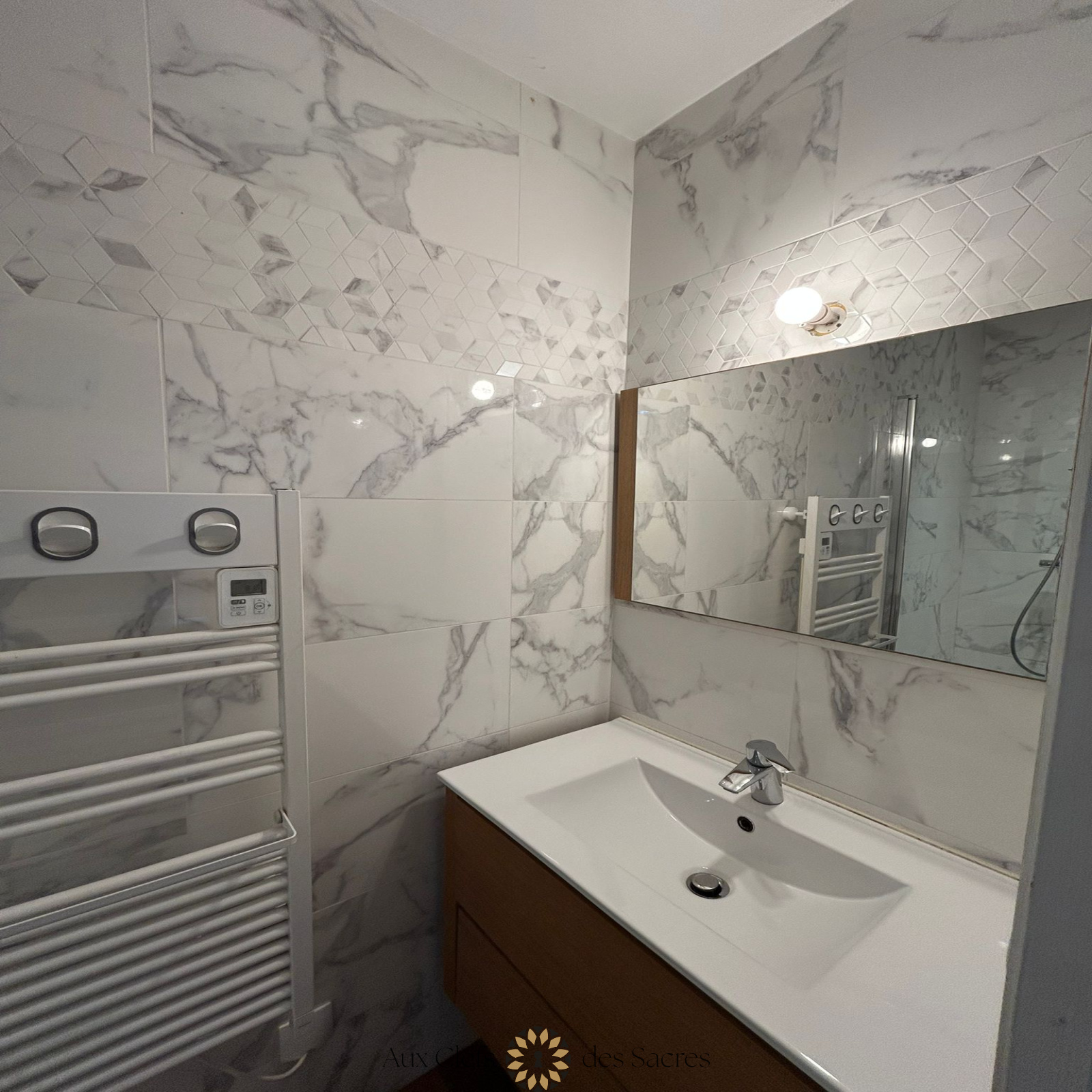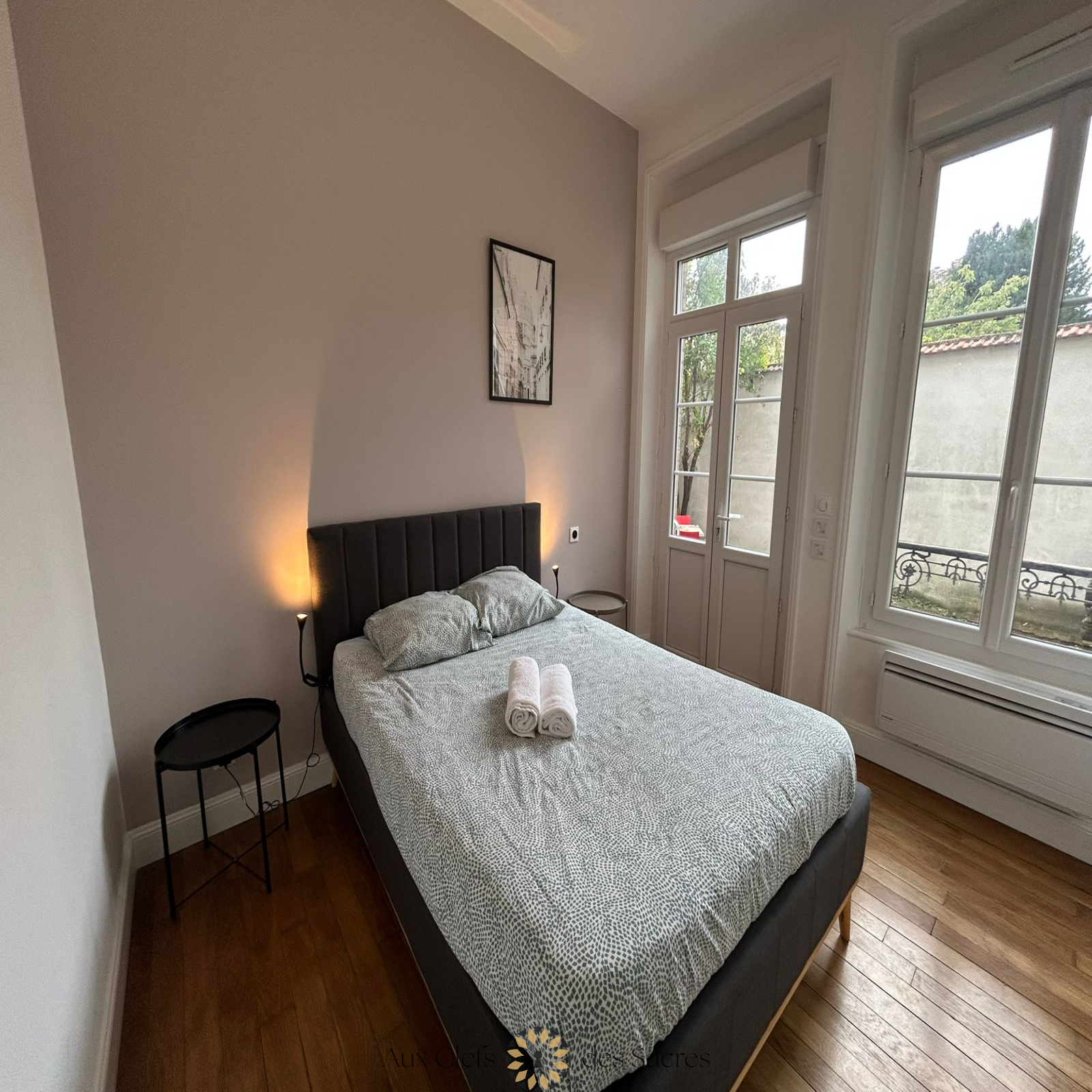 Appartement type 3 entièrement meublé avec goût, décoration très soignée. Cet appartement se compose d'une pièce de vie avec cuisine ouverte, deux chambres avec leur salle de douche privative et WC.