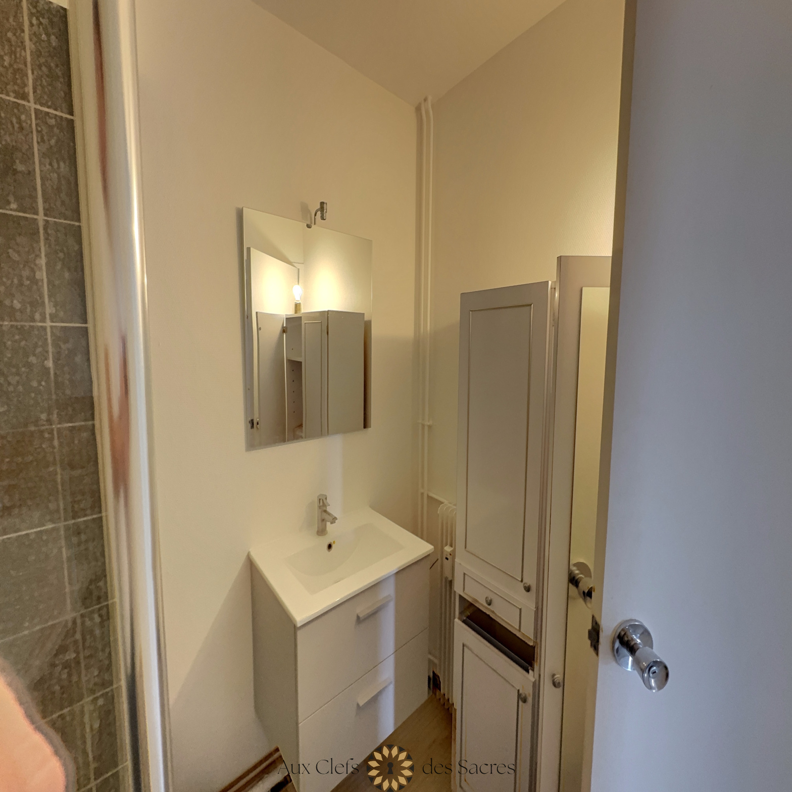 L’appartement dispose également d’une salle d’eau ainsi que d’une cuisine entièrement équipée, permettant une installation immédiate.