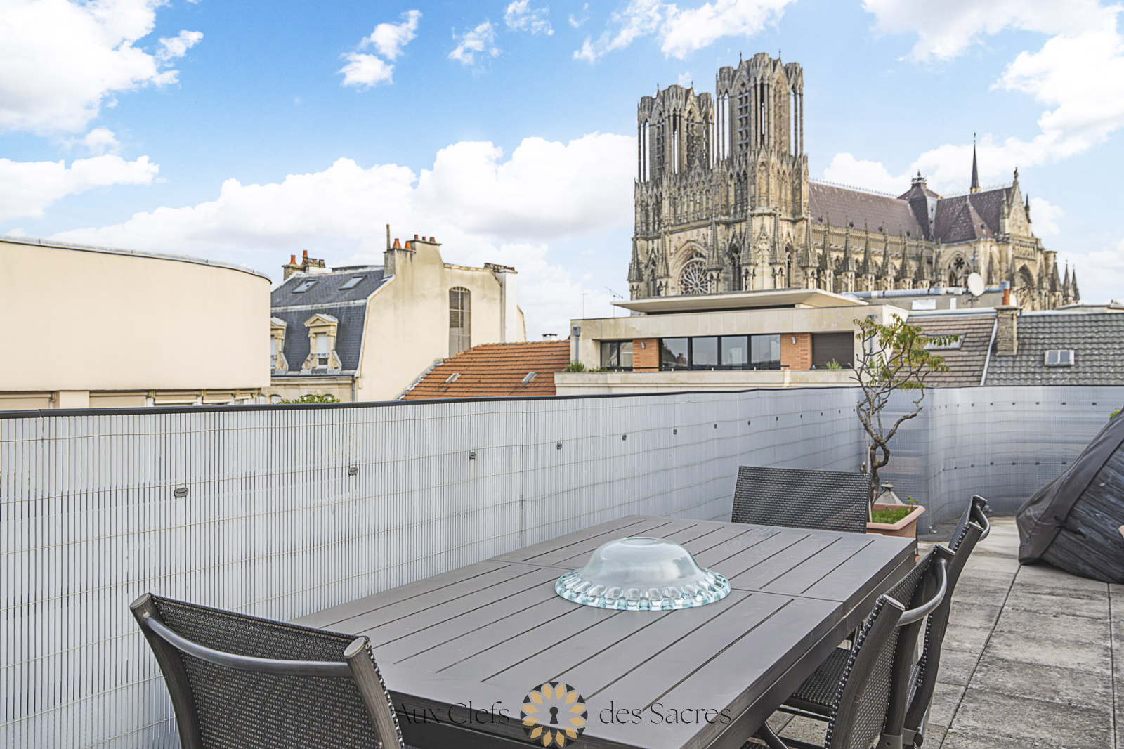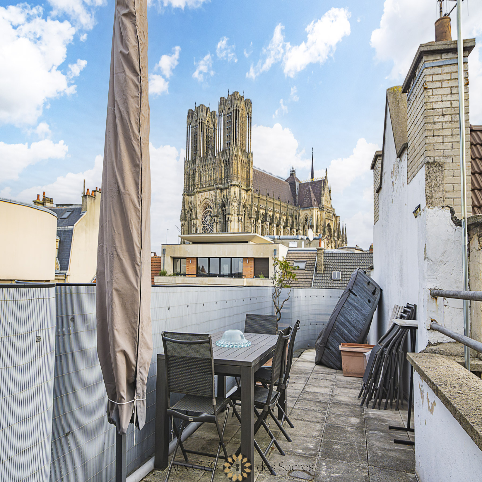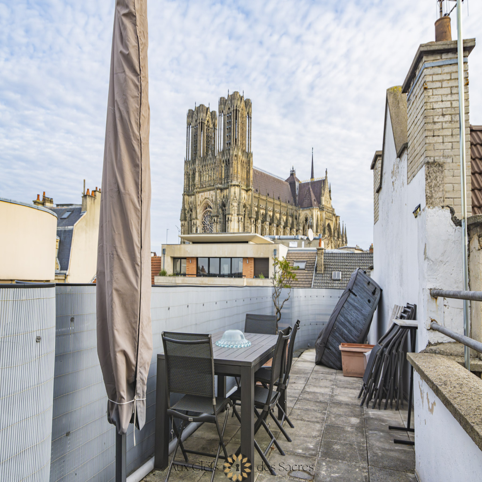 - Terrasse privée de 30 m² offrant une vue panoramique et dégagée sur la majestueuse Cathédrale, idéale pour vos moments de détente ou de réception.