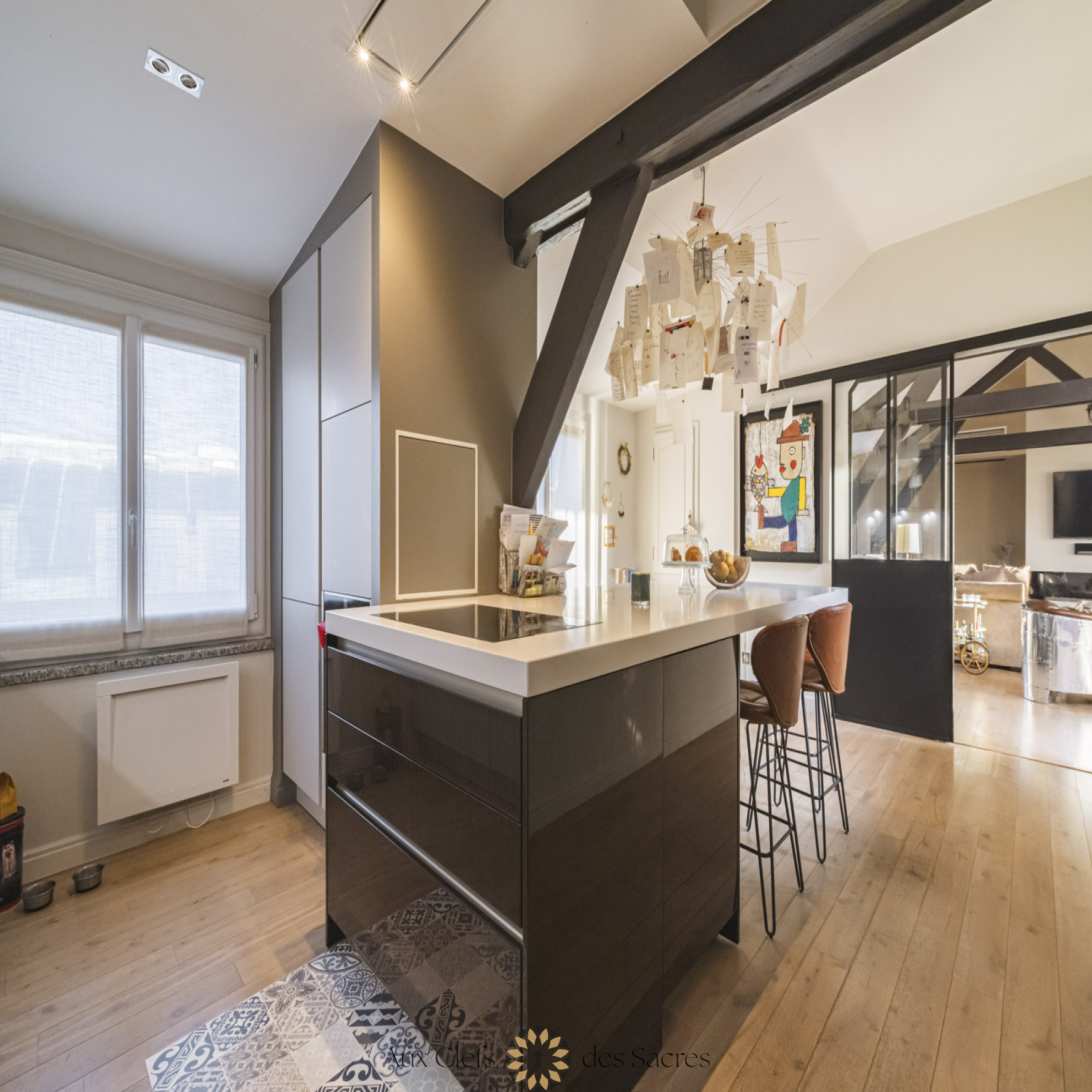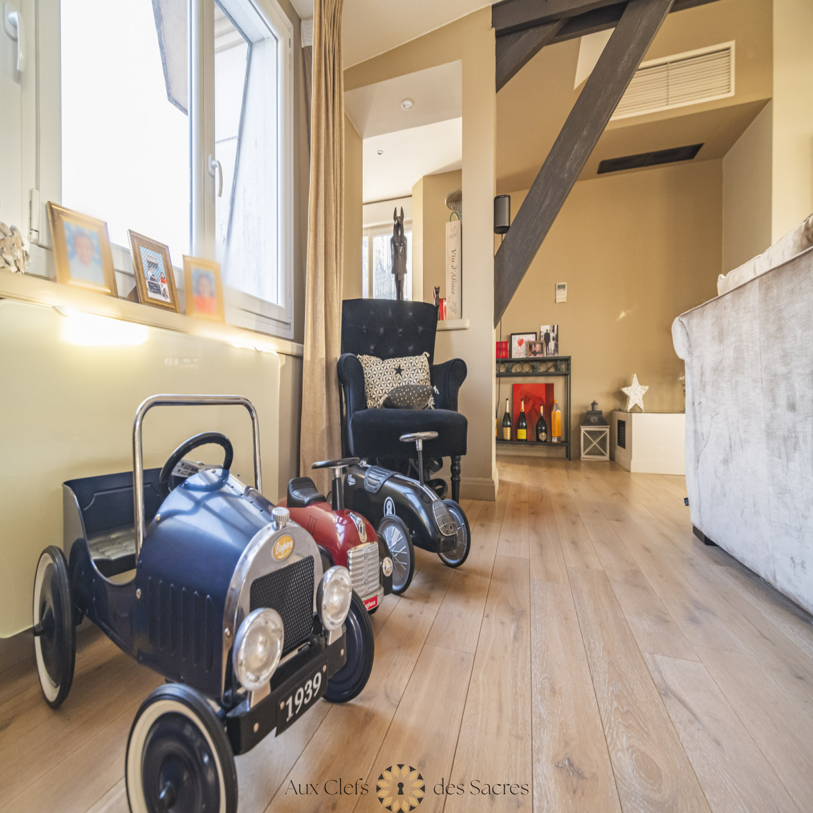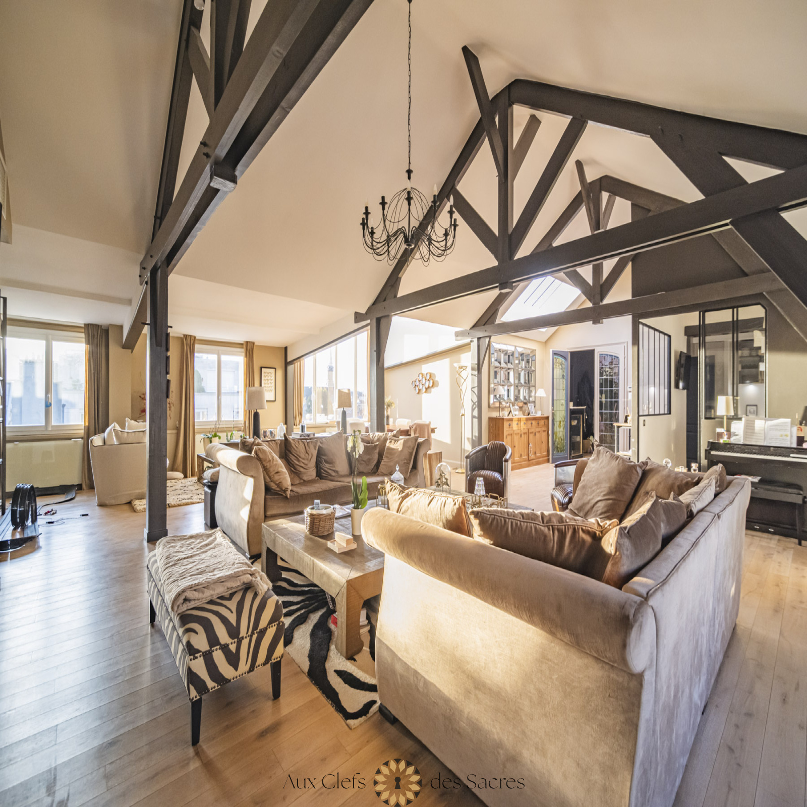 - Espace de vie lumineux de 113 m², entièrement rénové avec des matériaux de qualité, combinant modernité et cachet.