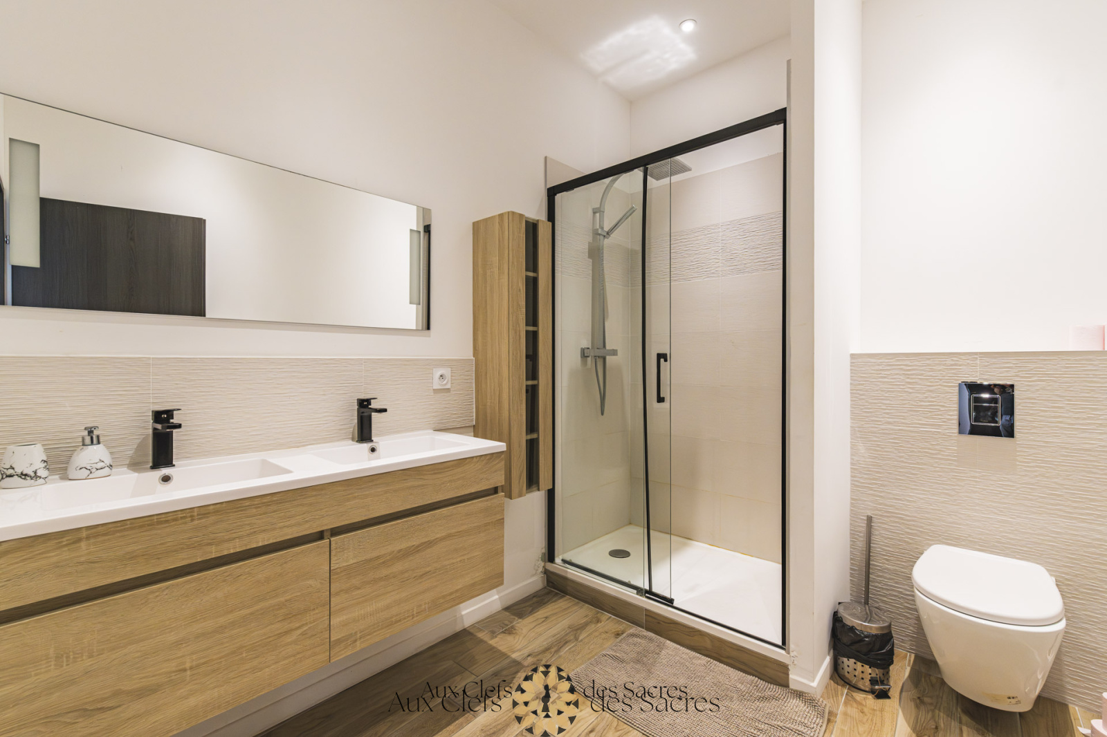 Situé au premier étage d’un immeuble à faibles charges, il se compose d’une spacieuse pièce de vie lumineuse, de trois chambres, de deux salles d’eau avec WC, ainsi qu’une buanderie.
